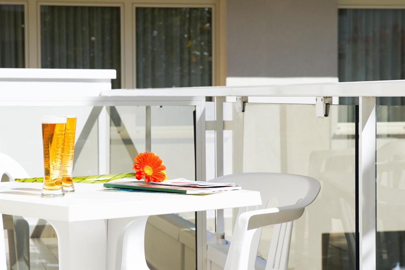 Camera Deluxe MatrimonialeDoppia con Letti Singoli con Balcone. Questa camera matrimonialedoppia con letti singoli vanta una piscina privata. Questa camera matrimonialedoppia con letti singoli è climatizzata e dotata di armadio, terrazza con vista sul giardino e bagno privato completo di doccia.