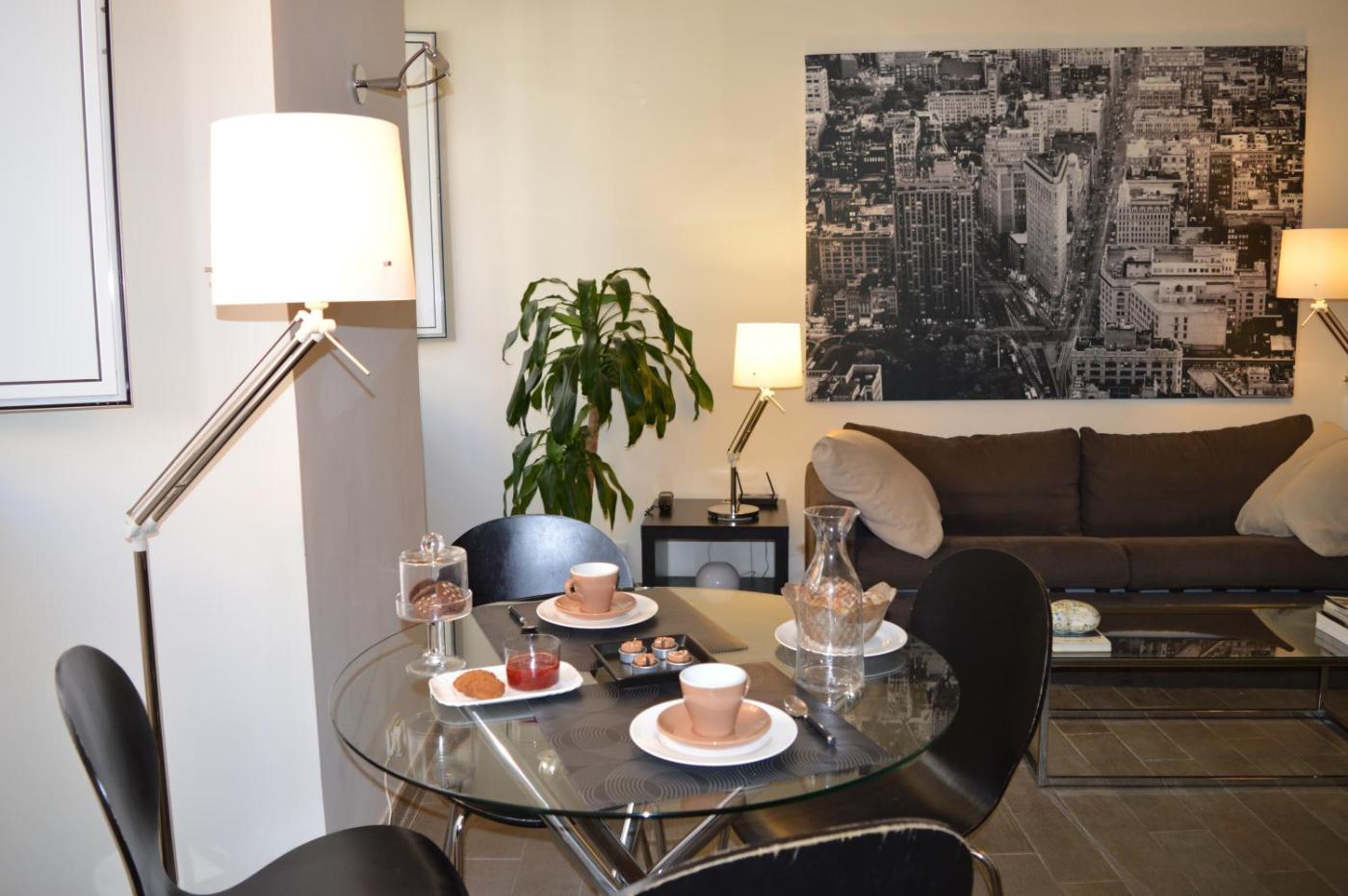 Appartamento. Appartamento con ingresso privato e aria condizionata composto da 1 soggiorno, 1 camera da letto indipendente e 1 bagno con doccia e bidè. La cucina è completa e comprende fornelli, frigorifero, utensili e microonde. In questo appartamento con vista città troverete anche comfort quali TV via cavo a schermo piatto, lavatrice eper la preparazione di tècaffè. Le pareti sono insonorizzate. Numero di letti disponibili: 2.